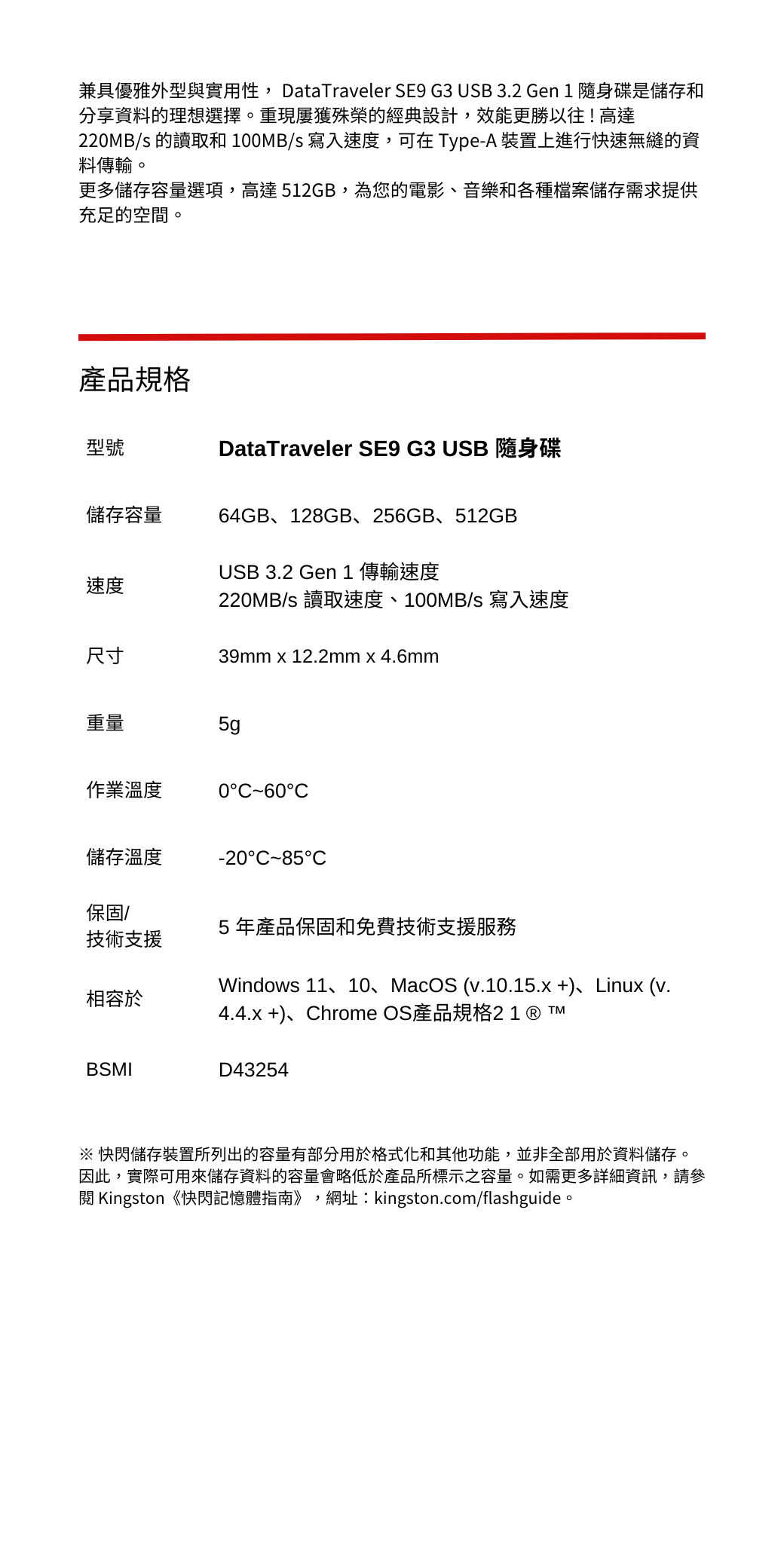如需詳細資訊,請參閱 Kingston《快閃記憶體指南》https://media.kingston.com/pdfs/MKF_283.2_Flash_Memory_Guide_TW.pdf