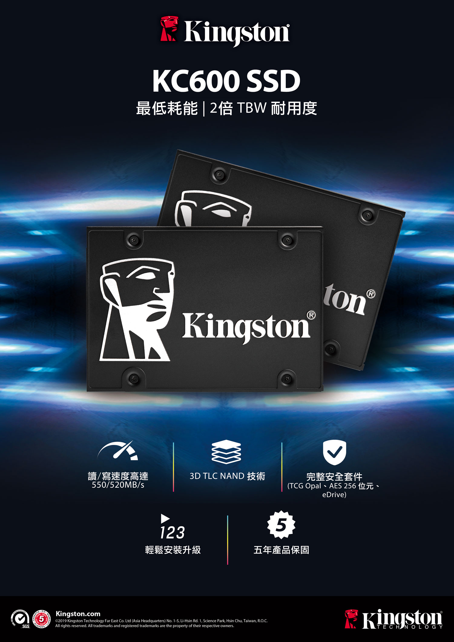 金士頓 Kingston KC600系列 2.5吋 SSD 256G 固態硬碟 SATA3 (五年保固)