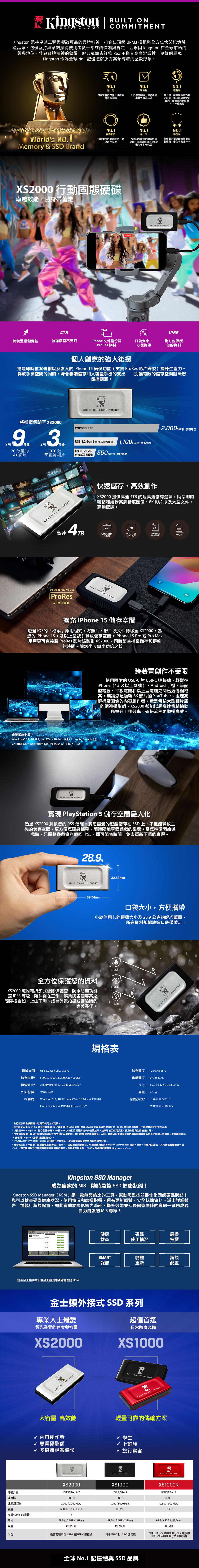 金士頓 XS2000系列 4TB USB3.2 Gen2x2 外接式固態硬碟 SSD 口袋大小