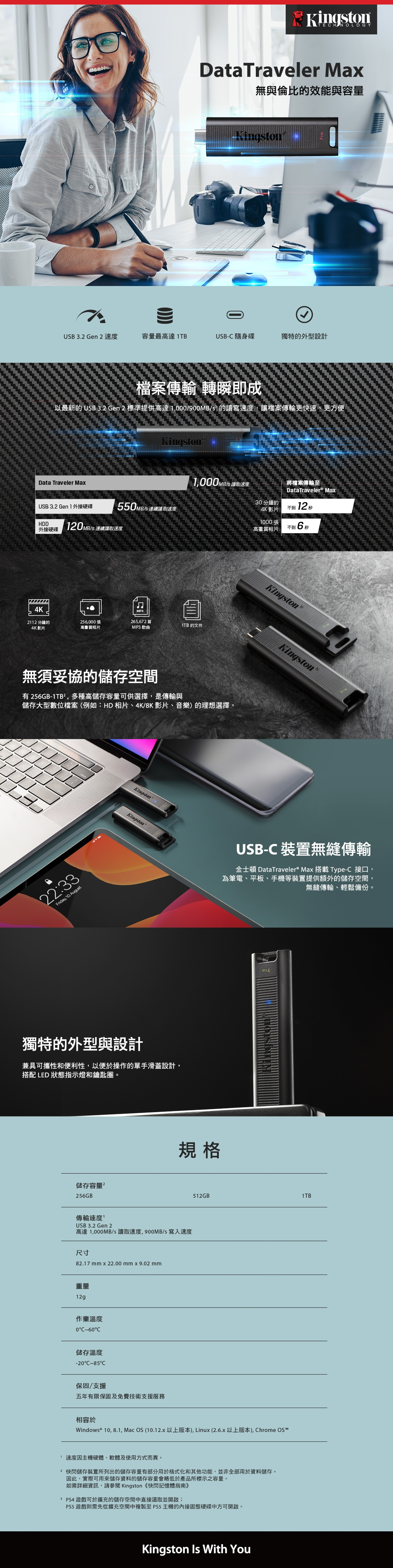 如需詳細資訊,請參閱 Kingston《快閃記憶體指南》https://media.kingston.com/pdfs/MKF_283.2_Flash_Memory_Guide_TW.pdf