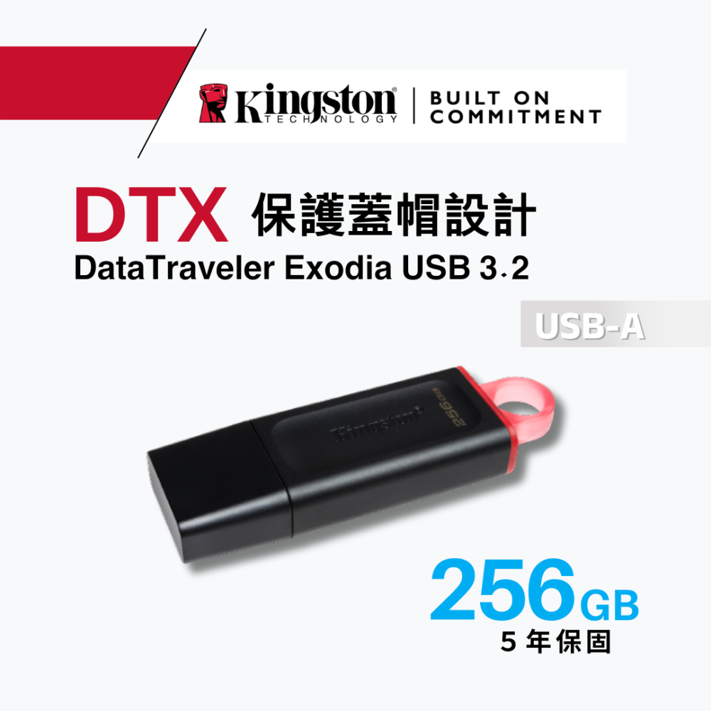 金士頓 DataTraveler Exodia 256GB USB 3.2 隨身碟 DTX 保護蓋及大扣環設計
