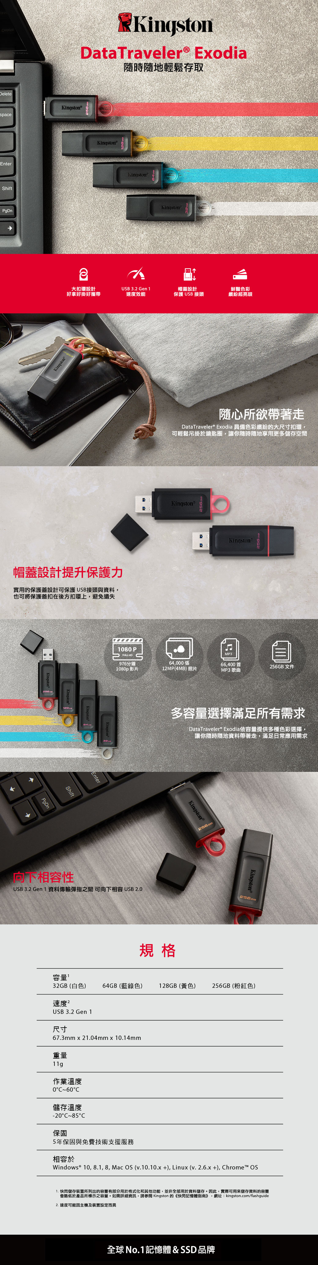 如需詳細資訊,請參閱 Kingston《快閃記憶體指南》https://media.kingston.com/pdfs/MKF_283.2_Flash_Memory_Guide_TW.pdf