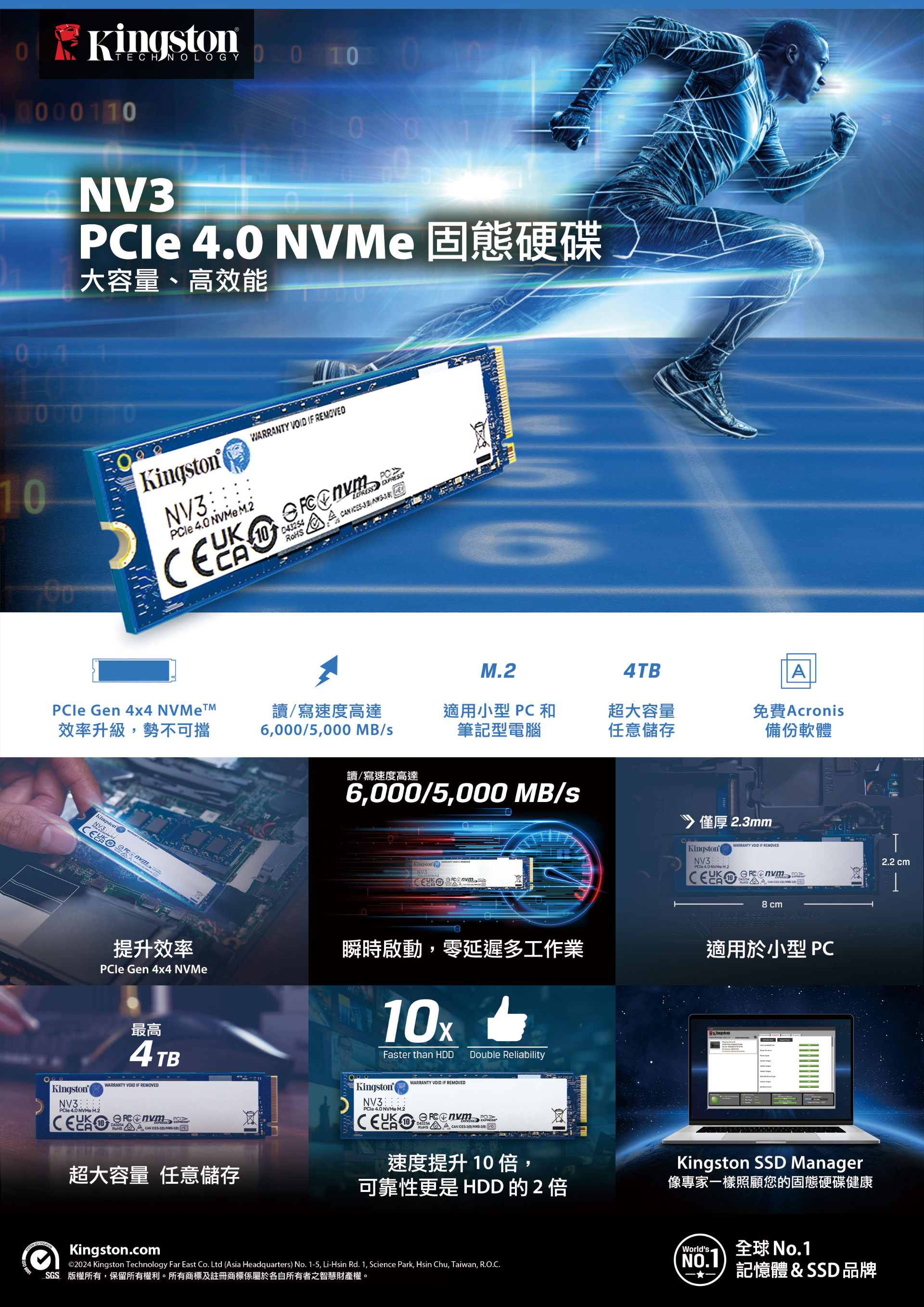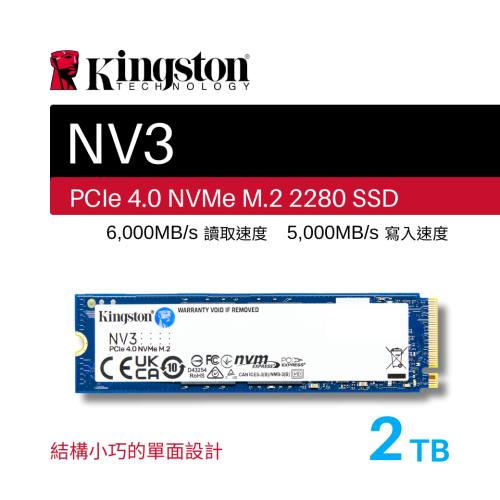 金士頓 Kingston NV3 2TB PCIe 4.0 NVMe 單面 M.2 2280 SSD