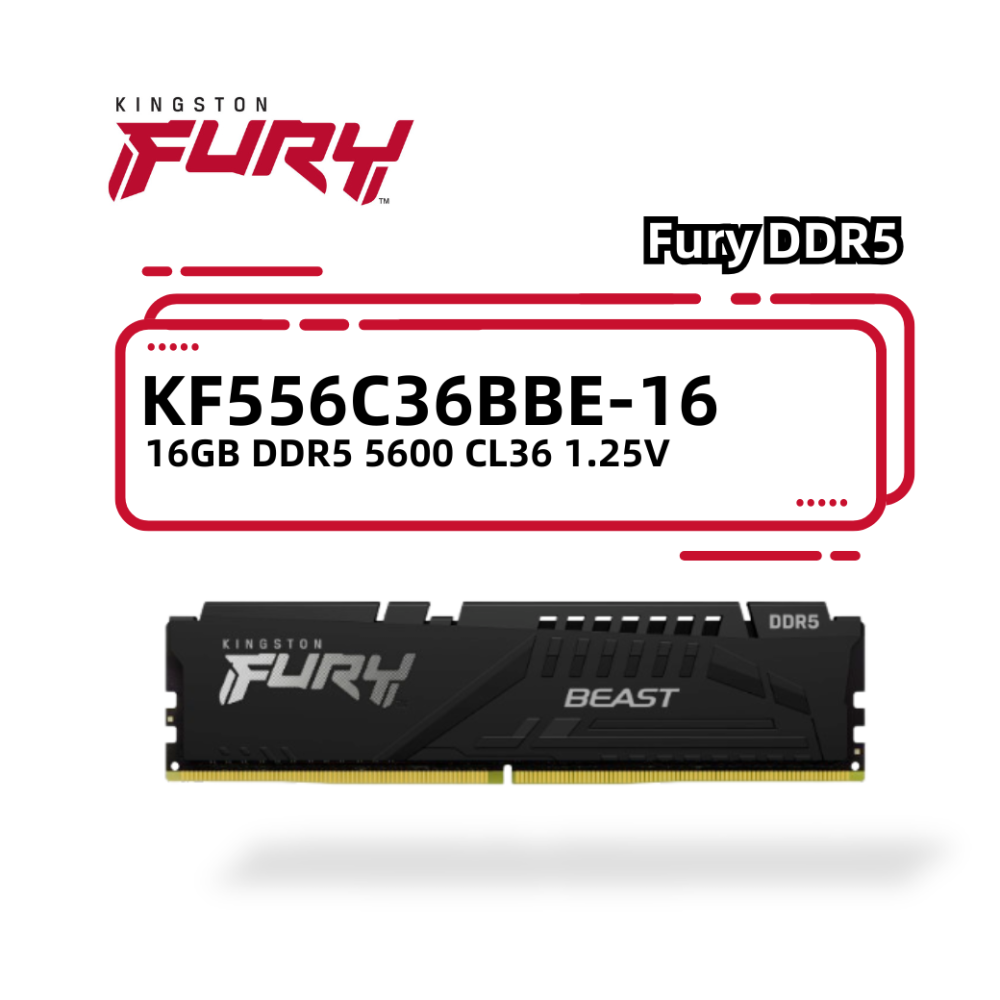 金士頓 FURY BEAST DDR5 5600 CL36 桌上型 記憶體 16GB KF556C36BBE-16