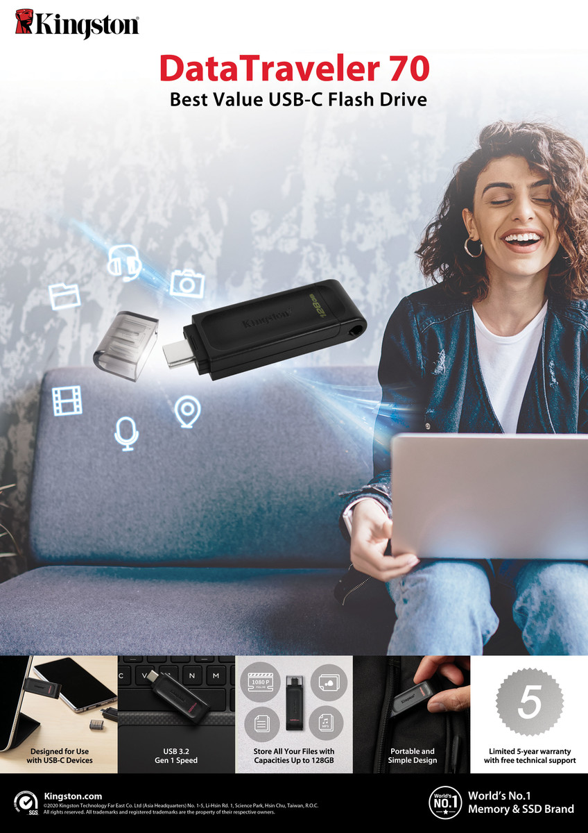 金士頓 DataTraveler 70 TypeC 64GB USB3.2 隨身碟 DT70 安卓手機