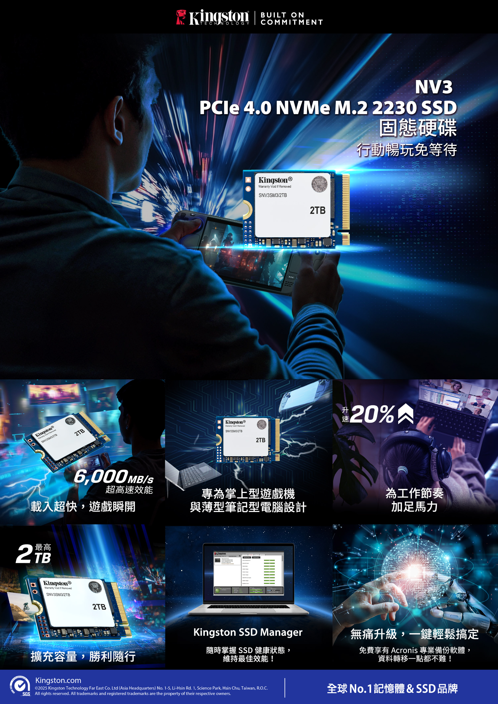 金士頓 Kingston NV3 500G PCIe 4.0 NVMe M.2 2230 SSD 薄型筆電適用