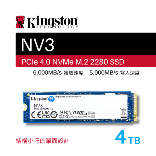 金士頓 Kingston NV3 4TB PCIe 4.0 NVMe 單面 M.2 2280 SSD