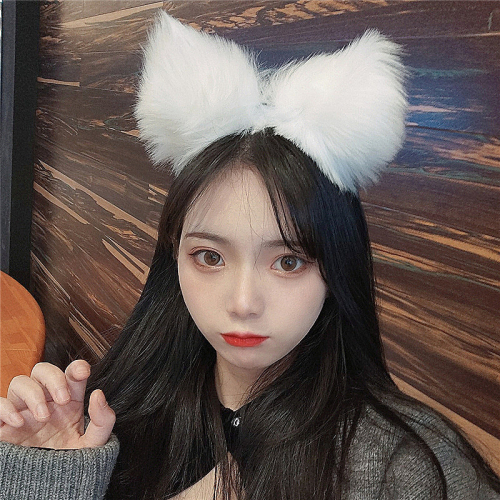 髮箍 白色狐狸耳朵頭箍 柔軟毛毛貓朵 髮箍 髮夾 日韓頭飾 髮飾