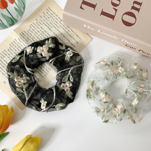 髮圈 韓式蕾絲花朵刺繡大腸圈 刺繡花朵發繩 網紗髮圈 大腸圈頭繩髮 飾品 生日禮物