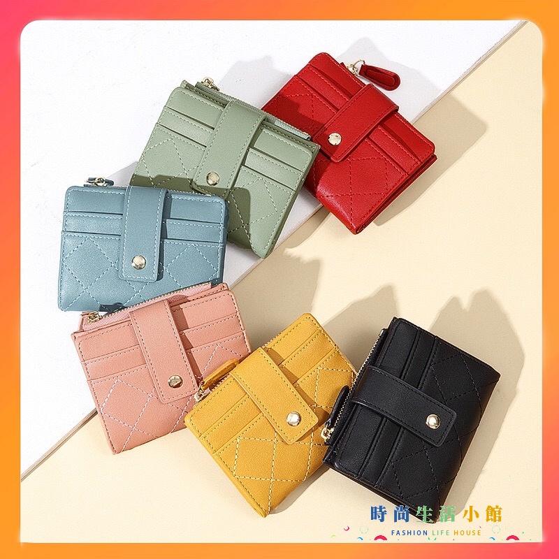 [現貨在台] 菱格紋簡約扣式短夾 時尚經典 6色可選