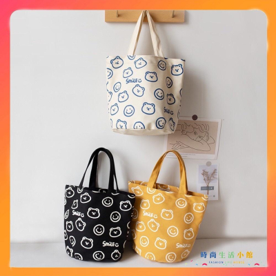 [現貨在台] 微笑熊圓筒帆布手提包 小布包 圓筒包 台灣現貨 3色可選