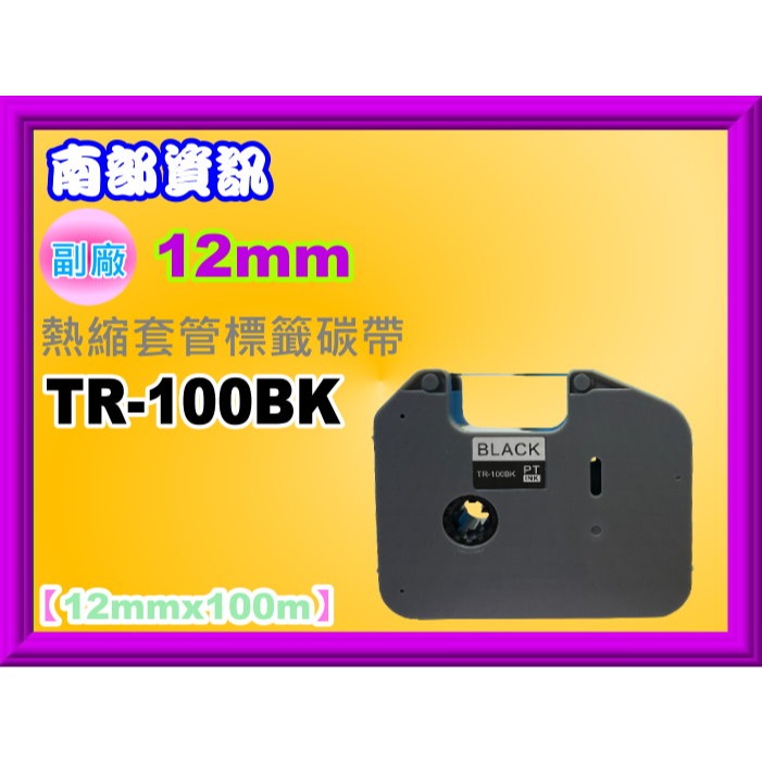 TR-100BK副廠熱縮套管標籤帶(12mmx100m)黑字