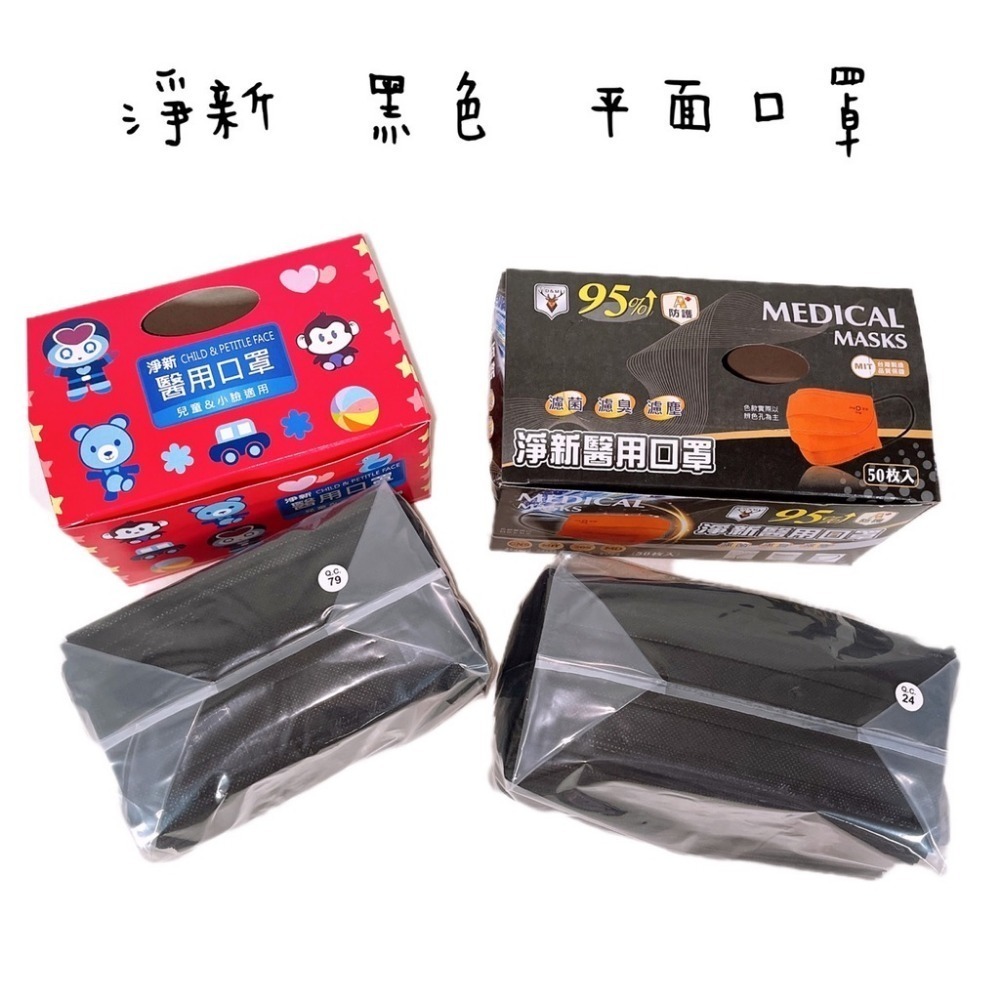 淨新 黑色 基品色 平面口罩 50入/盒 成人口罩 兒童口罩 醫療口罩