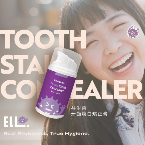 ELLO牙齒即刻亮白矯正膏使用了精心調配的紫色,來綜合牙齒上黃色素,能在視覺上達到立即亮白的效果,另外還添加了乳酸片球菌來抑制口腔壞菌