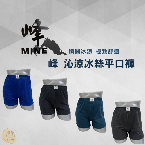 免運現貨秒出 峰涼感男內褲 峰MINE沁涼冰絲中平口褲 四角褲 涼感褲{樂藝 LOYII}