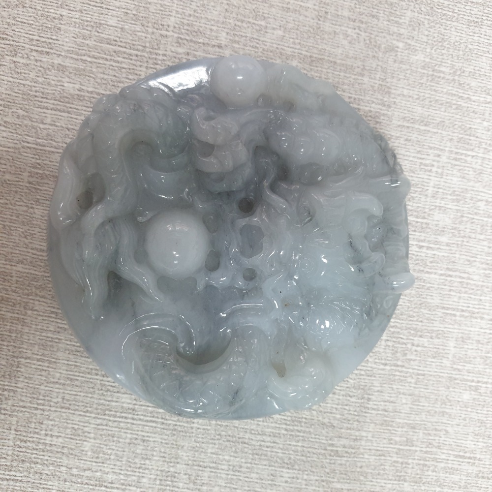逸品軒~天然緬甸玉A貨-Z5884-冰細糯烏雞圓形龍牌墜子