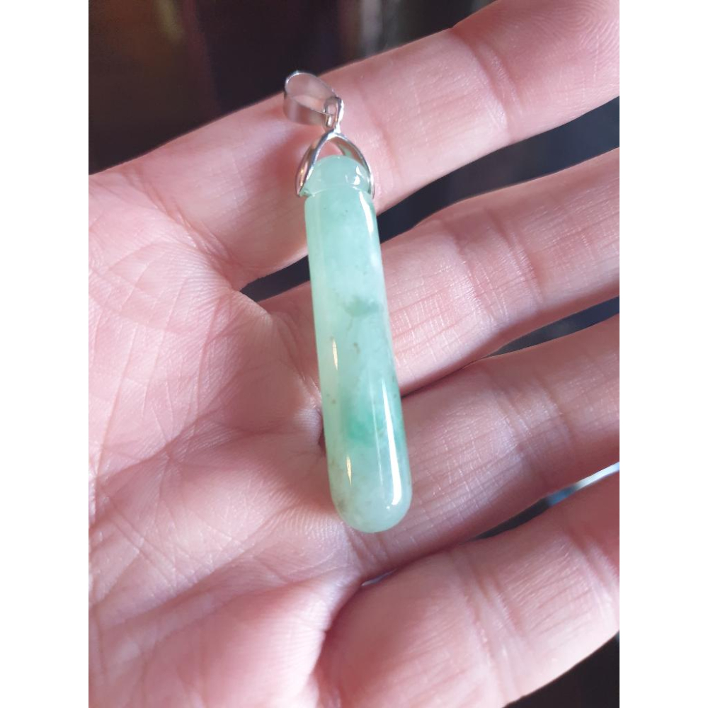 逸品軒~天然緬甸玉A貨-R1827-冰糯淡綠圓管型墜子 長42.9mm厚9mm 水頭好~造型簡約~大方~ 優惠價2500