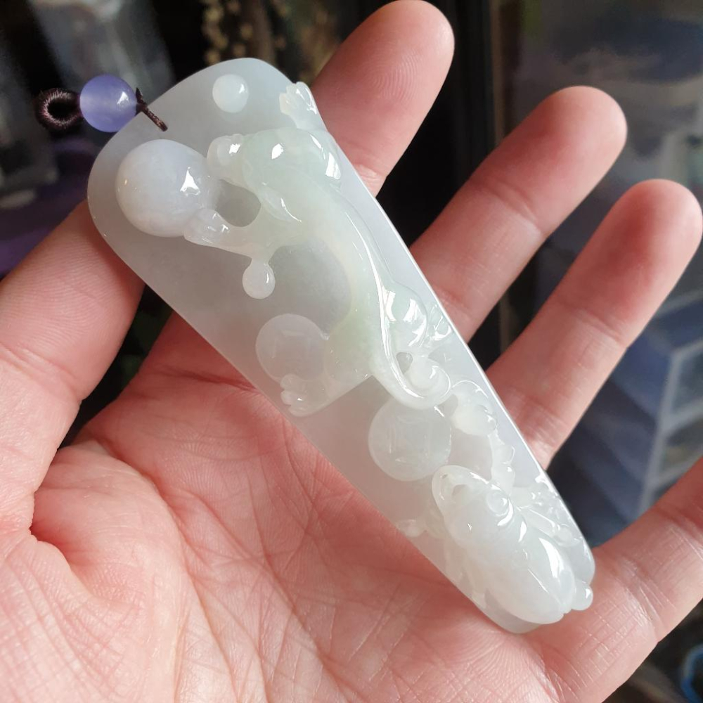 逸品軒~天然緬甸玉A貨-R1653-冰細糯富甲天下手把件 長98.7mm寬35.3mm厚18.5mm 玉質細膩,雕工立體