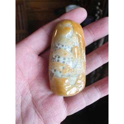 逸品軒~天然緬甸玉A貨-R1851-細糯蜜糖黃山水貴人墜子 長70.7mm寬34mm厚17.8mm 水頭好、雕工精細,巧