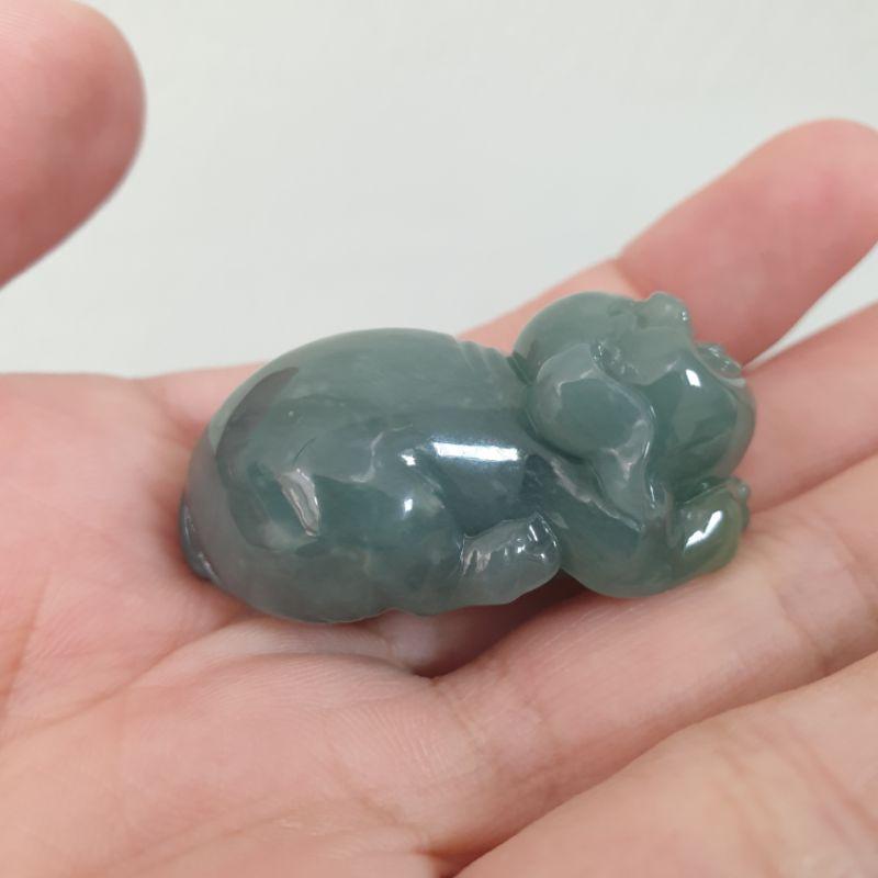天然玉A貨-O0299-瓜料細糯小豬小擺件/墜子長37.8mm寬22mm厚18.3mm💰特價999元