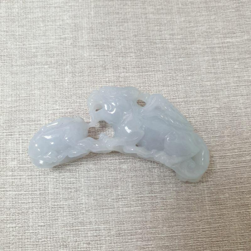 天然緬甸玉A貨-O0339-冰糯飄淡藍色望子成龍小擺件長63.9mm寬24.6mm厚13.1mm💰優惠價2680元