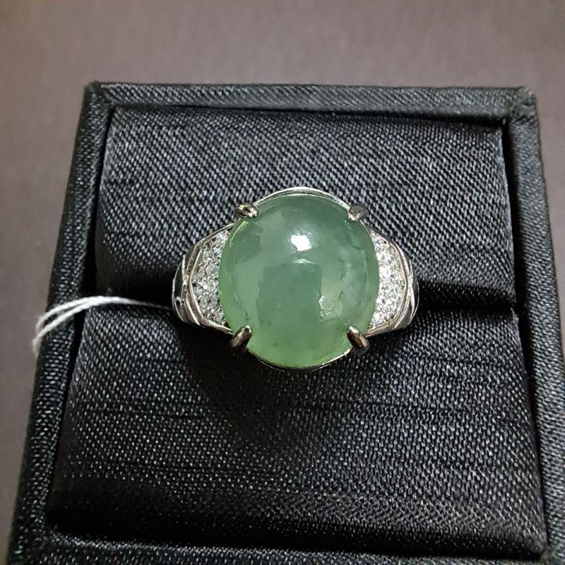 天然緬甸玉A貨-J0190-冰糯淡綠蛋面925銀戒指長12.8mm寬11.6mm厚5.7mm💰特價2380元•可調式戒圍