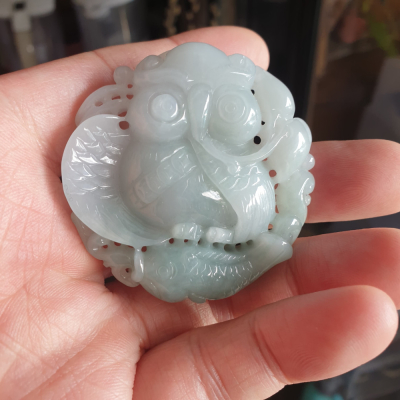 逸品軒~天然緬甸玉A貨-R1933-細糯貓頭鷹墜子