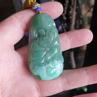 逸品軒~天然緬甸玉A貨-R1936-細糯荷葉鯉魚墜子