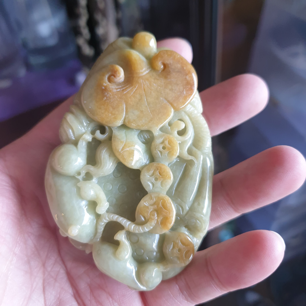 雕刻青蛙、蓮藕、錢幣及如意。