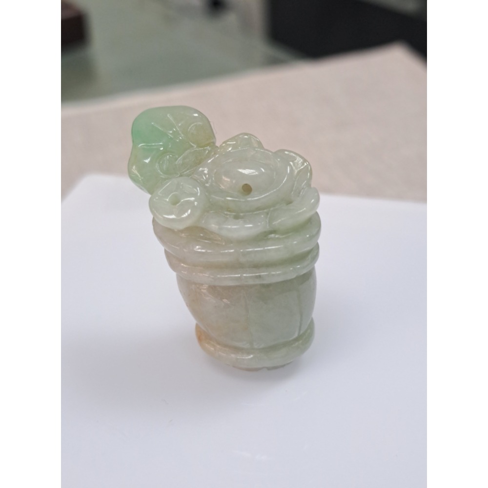 逸品軒~天然緬甸玉A貨-O0393-翡翠花籃擺件-
