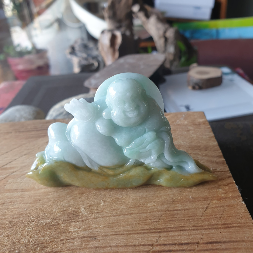 逸品軒~天然緬甸玉A貨-R1963-細糯黃翡立體彌勒佛擺件