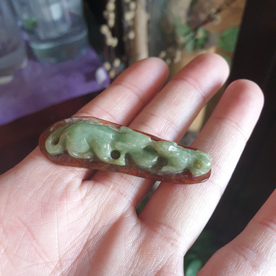 逸品軒~天然緬甸玉A貨-R1970-雙色錢鼠墜子/小擺件