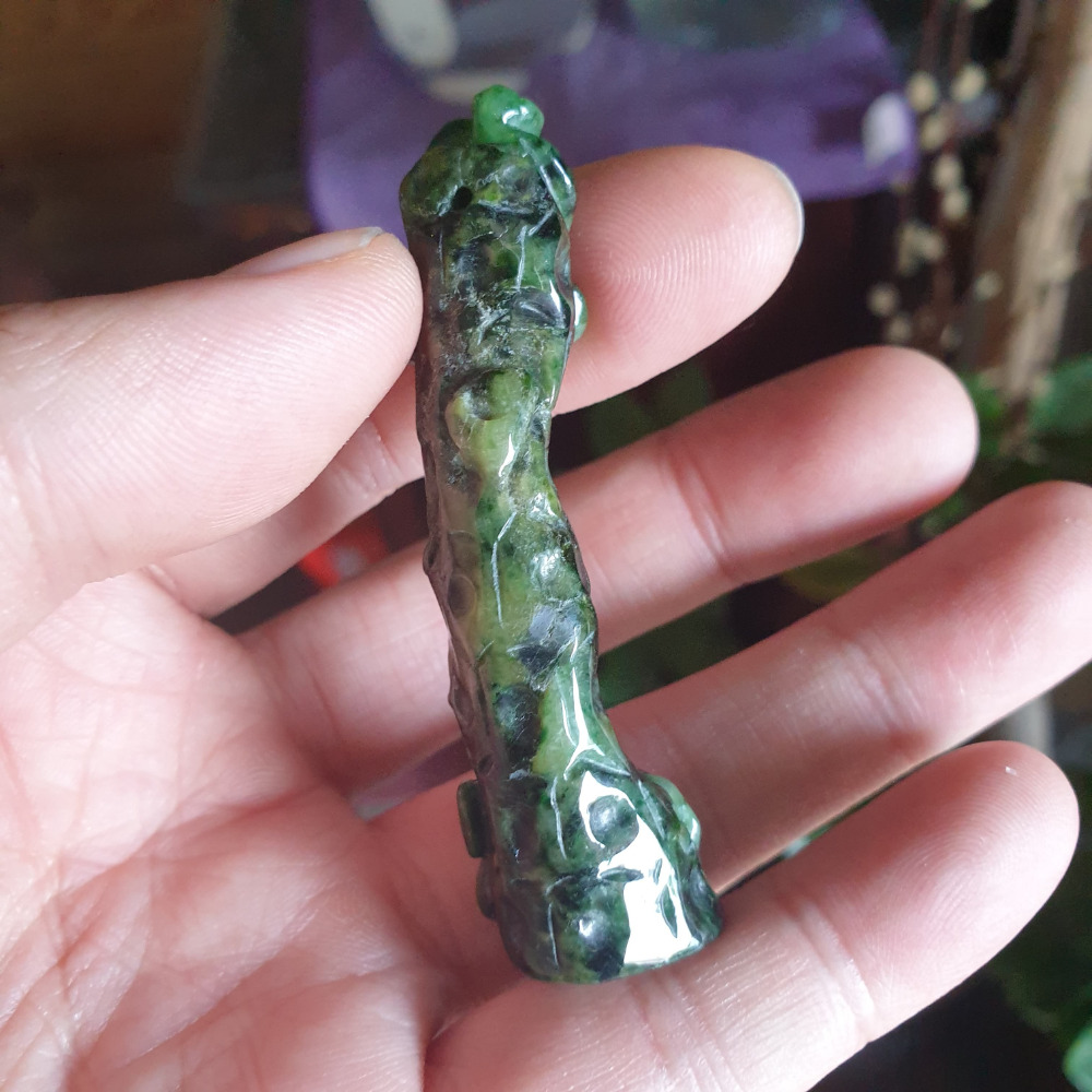 逸品軒~天然緬甸玉A貨-R1974-花青枯木逢春墜子/小擺件
