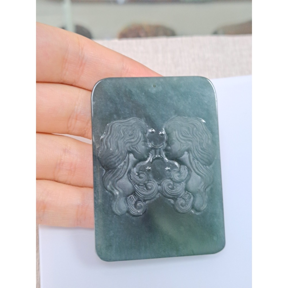 逸品軒~天然玉A貨-Z5939-瓜料星座牌雙子座墜子