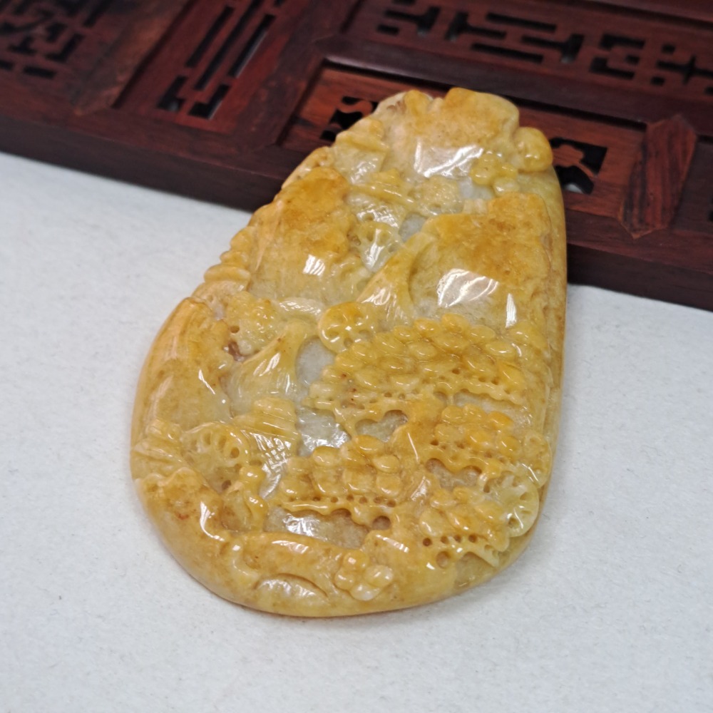 逸品軒~天然緬甸玉A貨-Z5975-黃翡山水貴人墜子