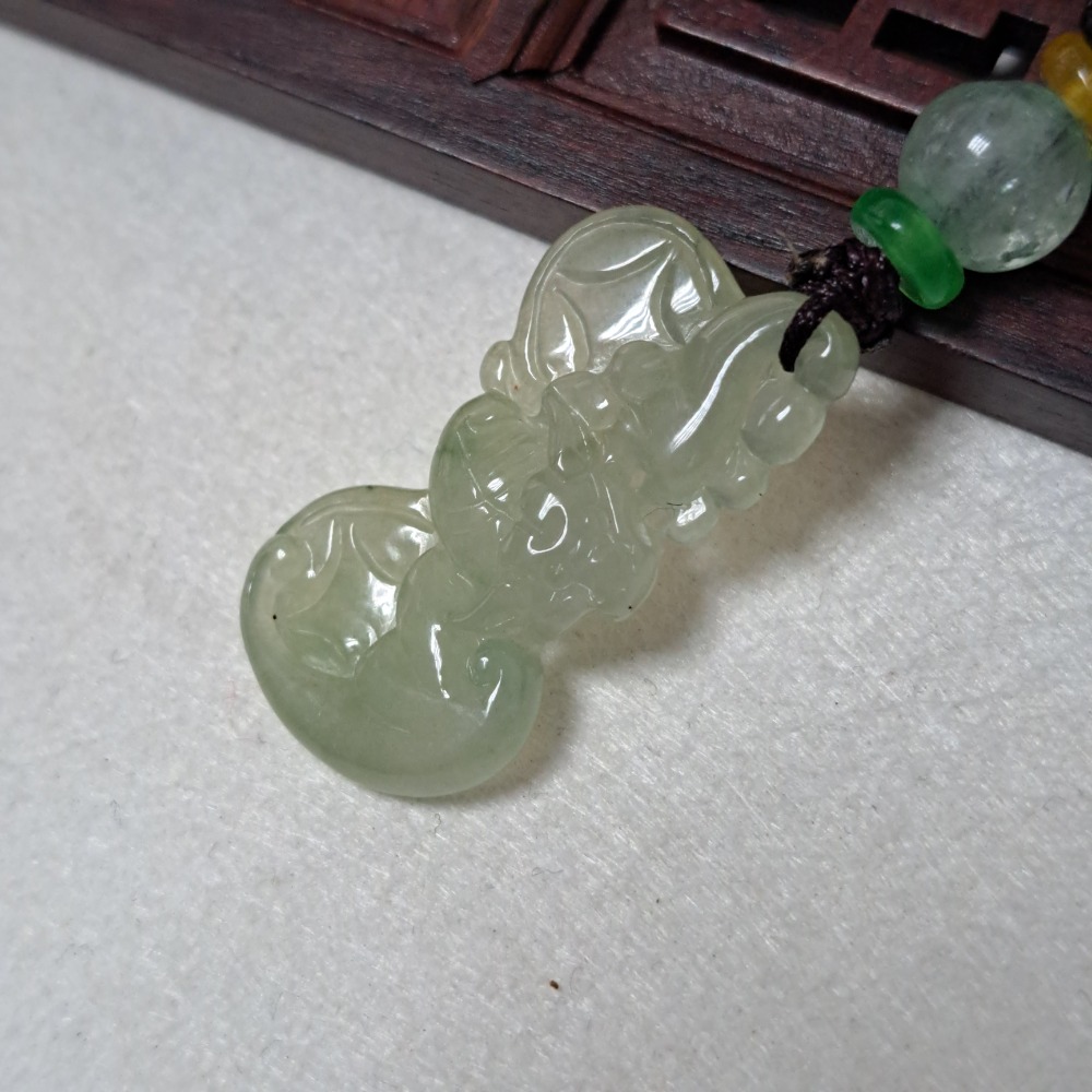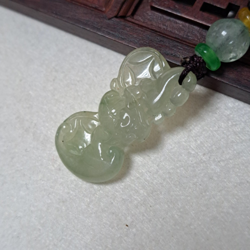 🦇玉質有透感,小巧精緻,頭是貔貅身是蝙蝠,招財小物件