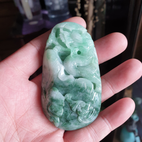 逸品軒~天然緬甸玉A貨-R1991-飄花招財龍墜子