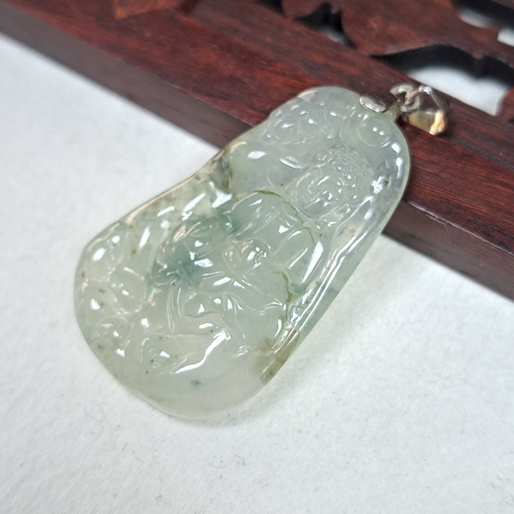 逸品軒~天然緬甸玉A貨-Z6051-冰糯飄花佛祖墜子