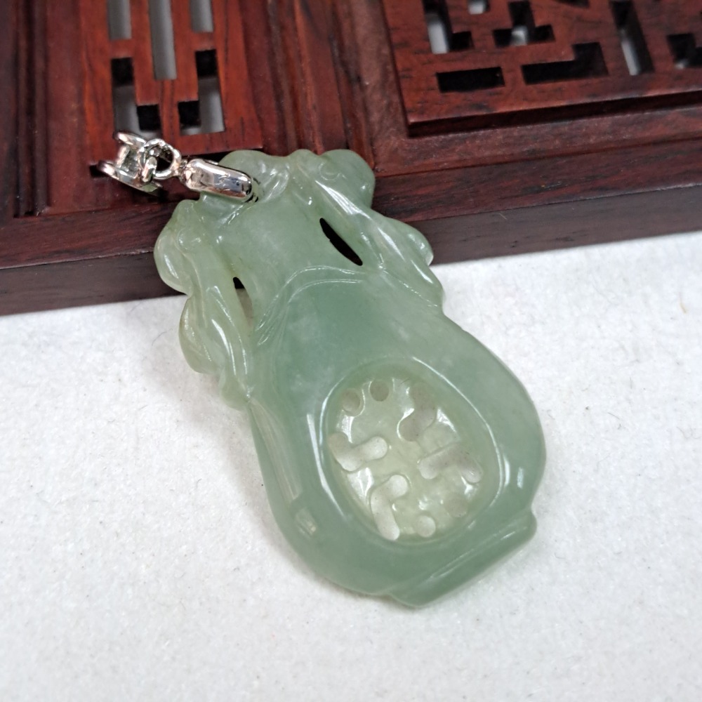 逸品軒~天然緬甸玉A貨-Z6109-冰糯淡綠聚財寶瓶墜子