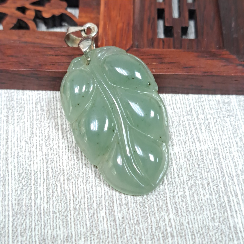 逸品軒~天然緬甸玉A貨-Z6137-冰糯葉子墜子