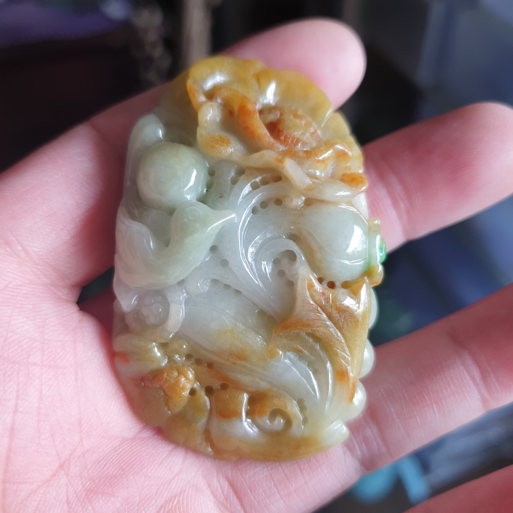 天然緬甸玉A貨-R2018-小三彩招財墜子