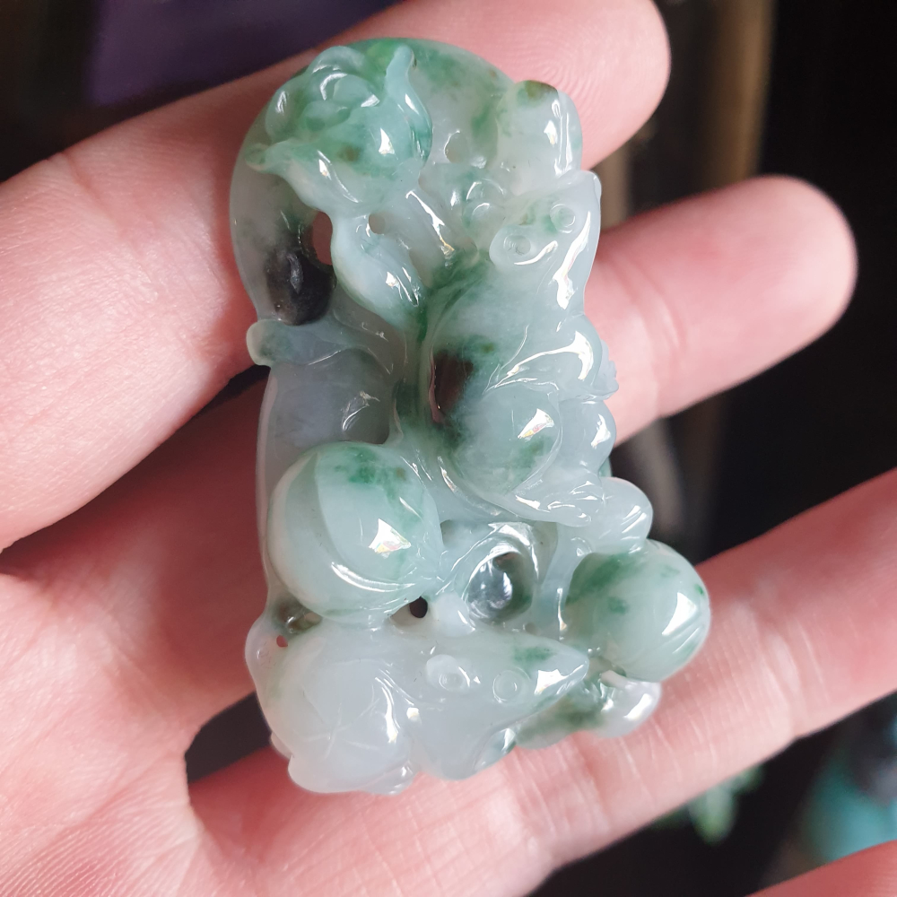 天然緬甸玉A貨-R2019-冰細糯飄花錢鼠墜子