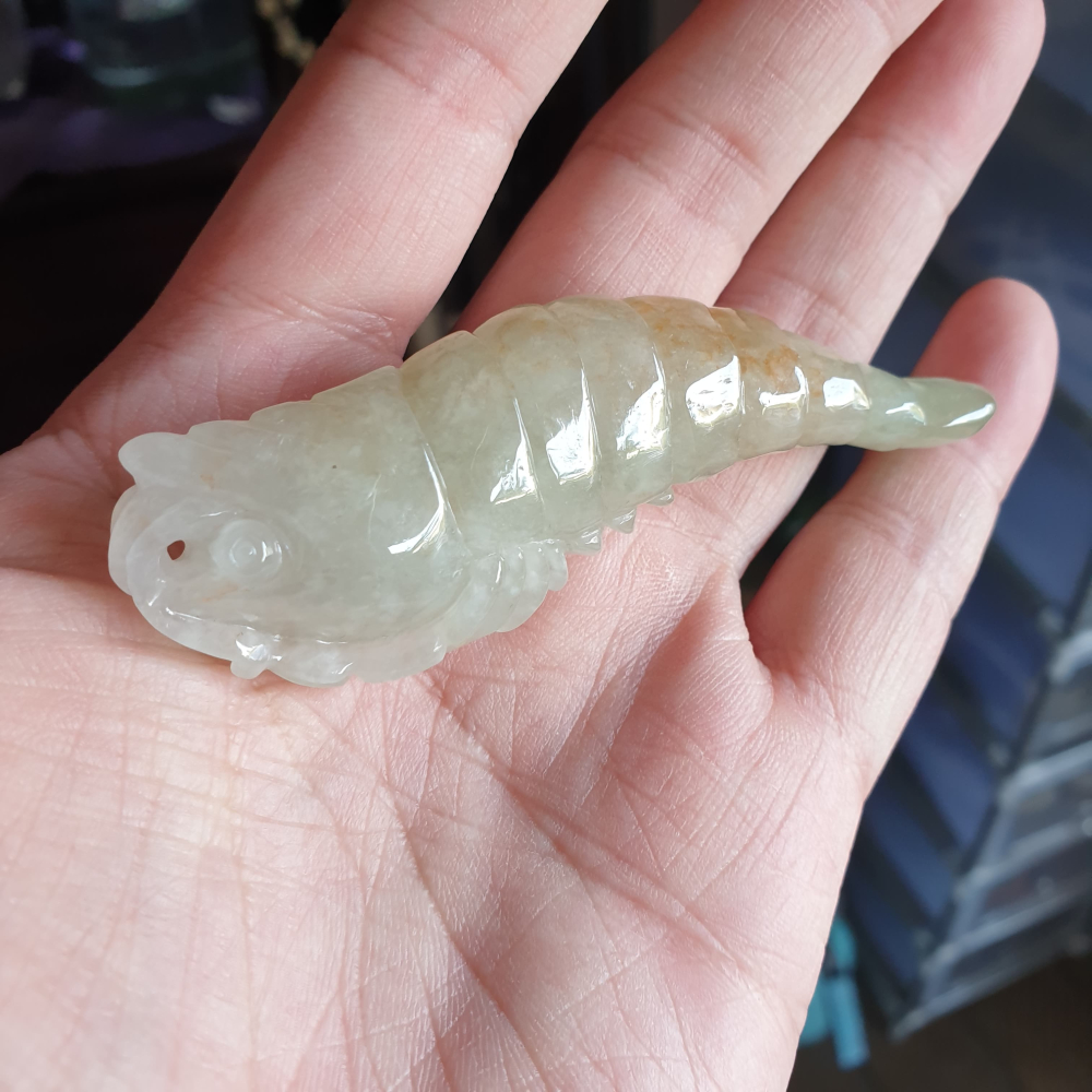 翡翠蝦生於水中,穿梭自由,且能屈能伸,寓意生活事業游刃有餘。