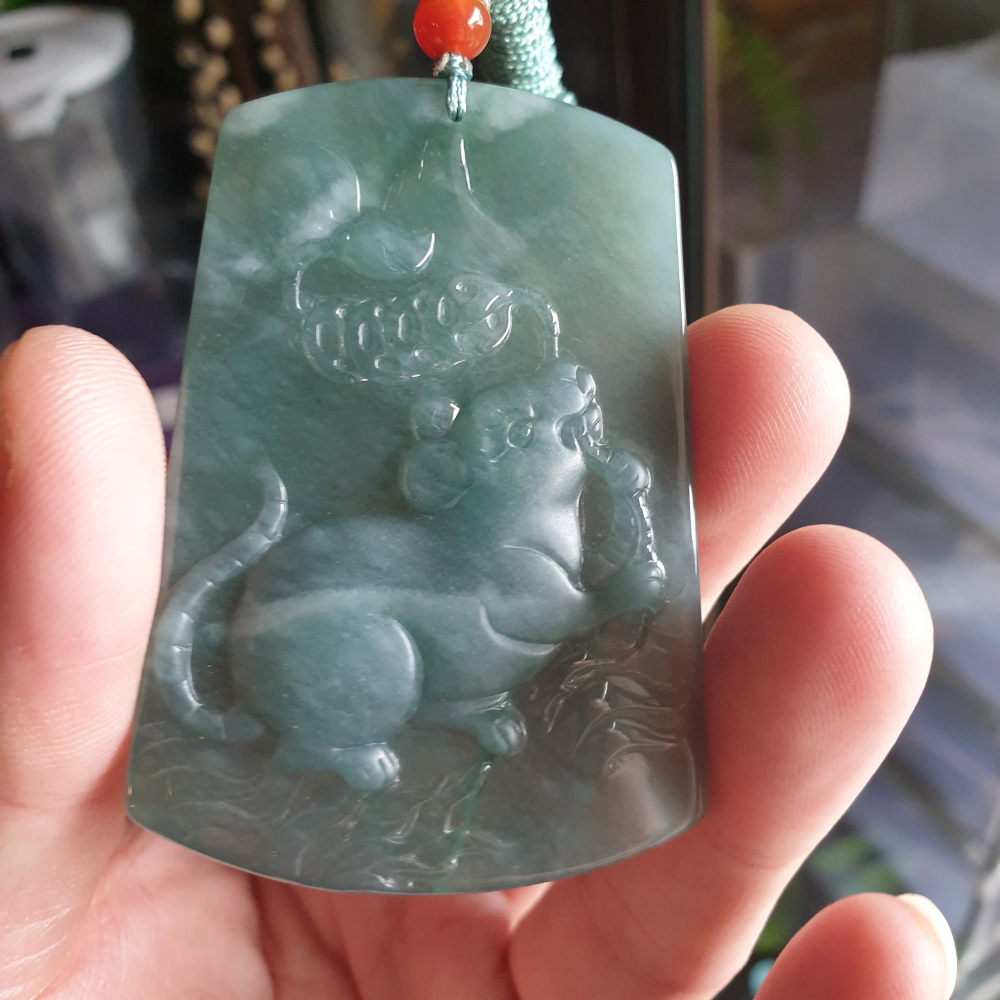 逸品軒~天然翡翠玉A貨-R2054-瓜料冰糯錢鼠墜子/小擺件