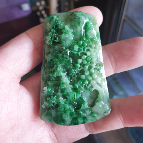 雕工立體,顏色較深綠色濃郁,非常漂亮。