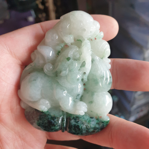 逸品軒~天然緬甸玉A貨-R2109-細糯飄花子母貔貅墜子