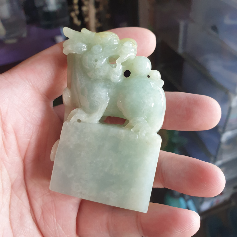 逸品軒~天然緬甸玉A貨-R2120-回頭麒麟印章/擺件