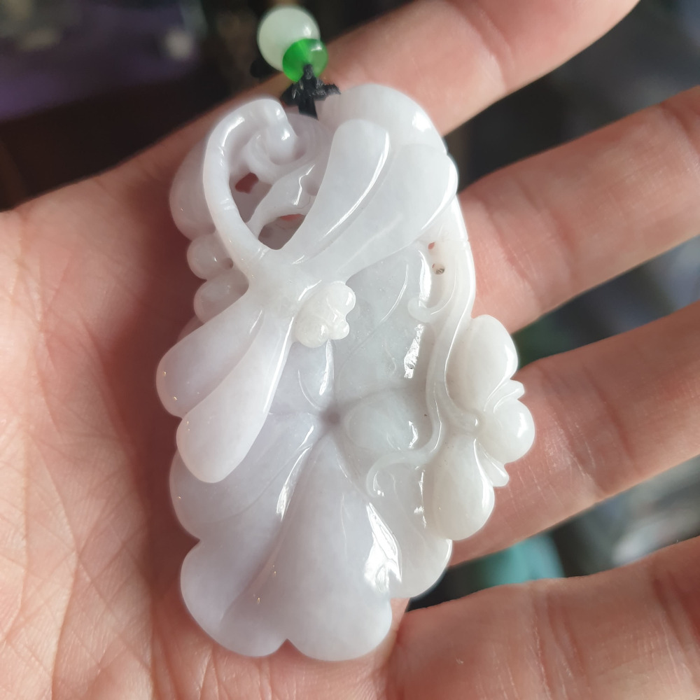 逸品軒~天然緬甸玉A貨-R2129-紫羅蘭蜻蜓荷葉墜子 長65mm寬39.9mm厚14.5mm 水頭好,玉質細膩。