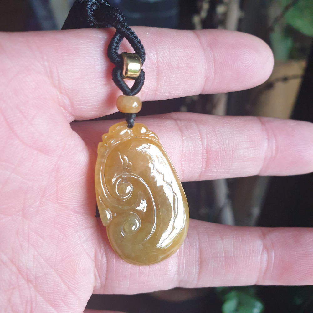 逸品軒~天然緬甸玉A貨-R2130-冰糯蜜糖黃翡如意墜子