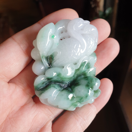 雕工立體,雙面雕、巧色巧雕。雕天鵝、荷葉、錢幣。